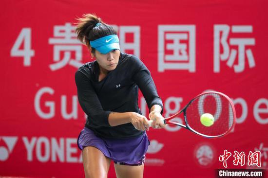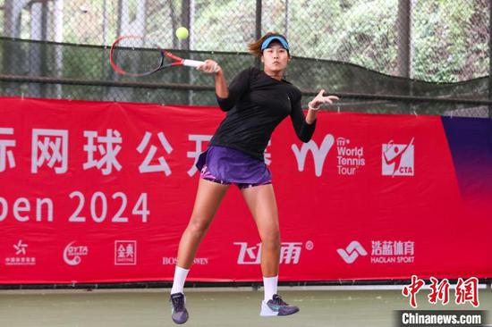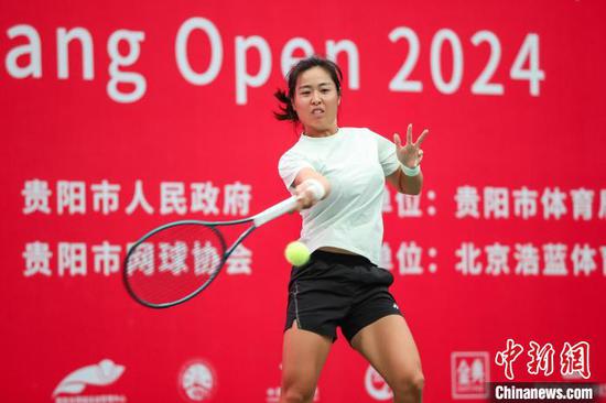 9月8日,2024贵阳国际网球公开赛在贵州省贵阳市观山湖区拉开帷幕,首个比赛日迎来女子单打预赛第一轮八场赛事。图为中国选手王烁然在比赛中。中新社记者 瞿宏伦 摄