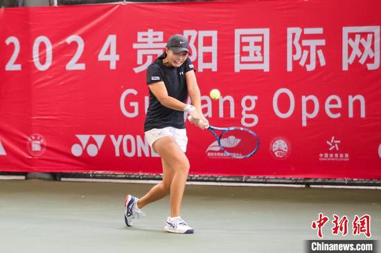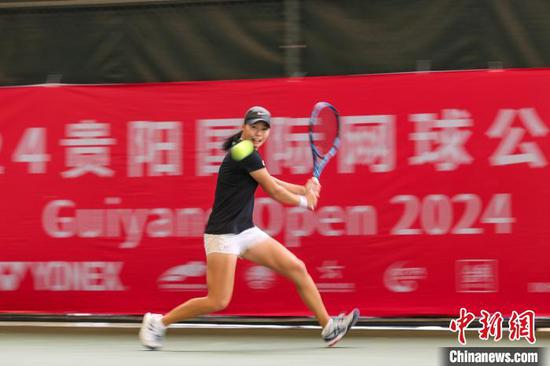 9月8日,2024贵阳国际网球公开赛在贵州省贵阳市观山湖区拉开帷幕,首个比赛日迎来女子单打预赛第一轮八场赛事。图为中国选手叶秋语在比赛中。中新社记者 瞿宏伦 摄