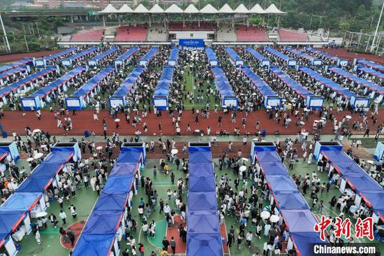 图为航拍招聘会现场。(无人机照片)中新社记者 瞿宏伦 摄