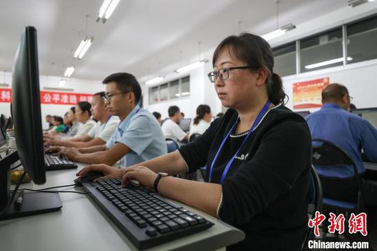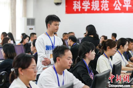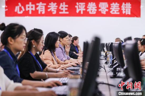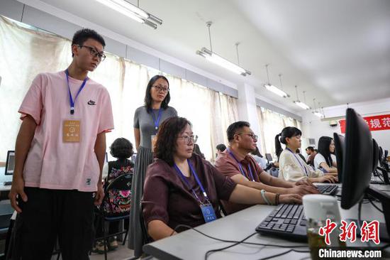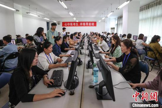 6月15日,贵州省贵阳市,评卷老师进行电脑阅卷。中新社记者 瞿宏伦 摄