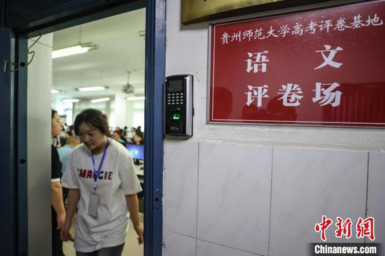 6月15日,贵州省贵阳市,一名考生代表走出语文评卷场。中新社记者 瞿宏伦 摄