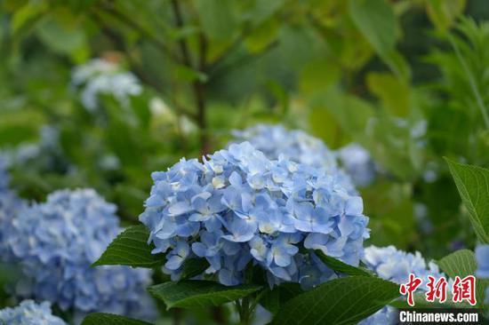 图为贵州省黔南布依族苗族自治州龙里县龙架山国家森林公园里盛开的绣球花。石小杰 摄