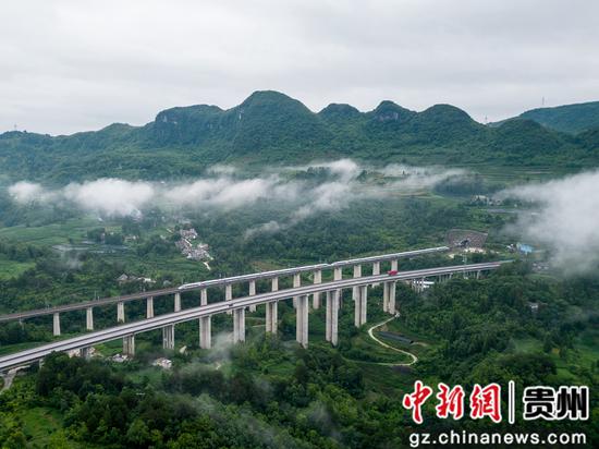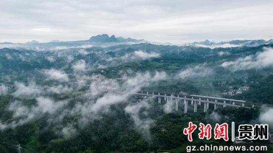 7月1日,在大方县六龙镇拍摄的高速列车在云雾间穿梭。何志刚 摄