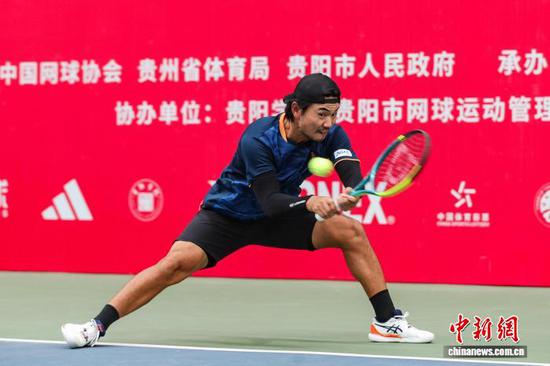 9月20日,2025贵阳国际网球公开赛男子双打项目决赛在贵州省贵阳市观山湖区举行,黄琮豪(中国台北)/渡边圣太(日本)组合击败杨明远(中国)/弗格森(澳大利亚)组合获得冠军。图为渡边圣太在比赛中。记者 瞿宏伦 摄