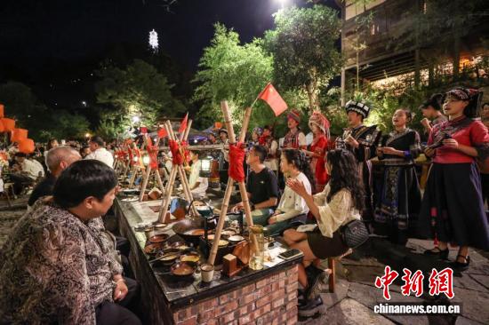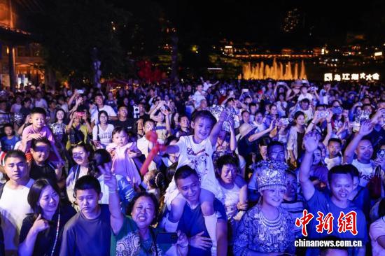 游客在观看乌江寨音乐派对。中新社记者 瞿宏伦 摄