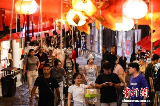游客在乌江寨夜游。中新社记者 瞿宏伦 摄
