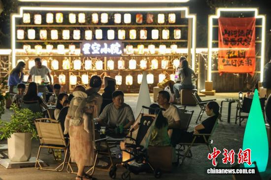 游客在乌江寨星空小院品尝美食。中新社记者 瞿宏伦 摄