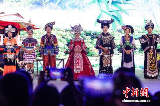 乌江寨民族盛装展示吸引游客观看。中新社记者 瞿宏伦 摄