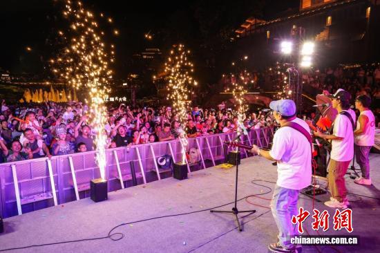 乌江寨音乐派对吸引游客观看。中新社记者 瞿宏伦 摄