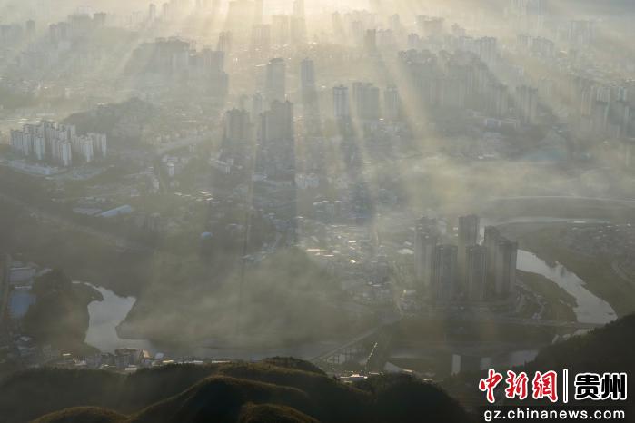 初冬时节,贵州省黔东南苗族侗族自治州凯里市初冬清晨美如仙境。晨雾轻笼大地,第一缕阳光穿透薄雾,丁达尔效应让金色光束交织,云雾化作流动轻纱。