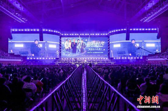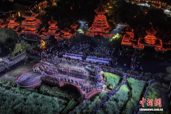 图为文化交流专场晚会现场。(无人机照片)中新社记者 瞿宏伦 摄