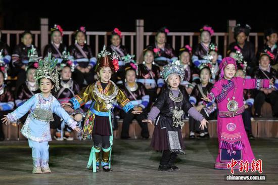 图为飞越彩虹栽麻侗族童声合唱团在演唱歌曲《小山羊》。中新社记者 瞿宏伦 摄