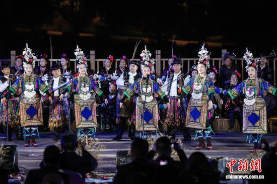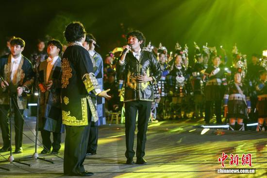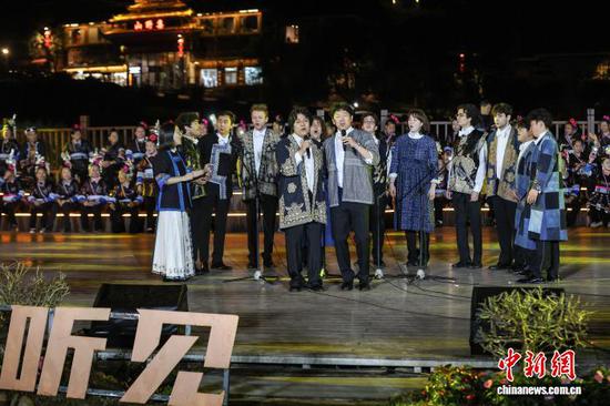 图为贵州村歌团在演唱歌曲《我在贵州等你》。中新社记者 瞿宏伦 摄