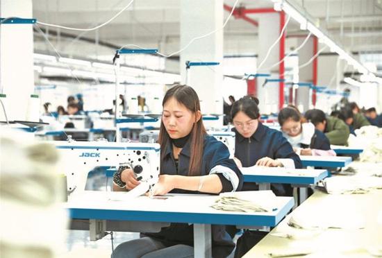 图为贵州美邦新能服饰公司员工在过渡厂房里赶制订单。黄忠贵摄(影像贵州)4月15日,美特斯邦威与贵州纺织产业集团联合打造的省级轻纺产业重点项目——贵州美邦新能服饰开业仪式在大方经济开发区举行。该项目总投资预计超20亿元,建成后可提供两万个以上...[详情]