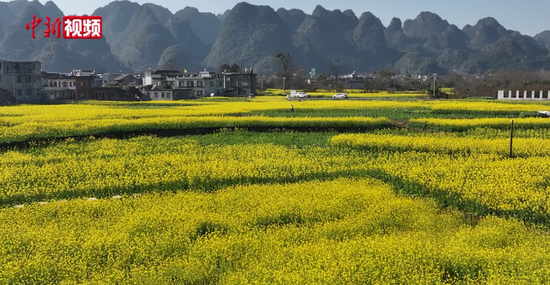 贵州万峰林:千亩油菜花盛开 冬日田园美如画