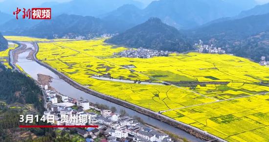 贵州铜仁万亩油菜花盛开 宛如田园山水画卷