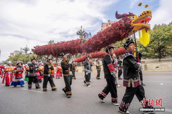 流光溢彩“闹”新春 贵州施秉花车龙灯巡游贺佳节