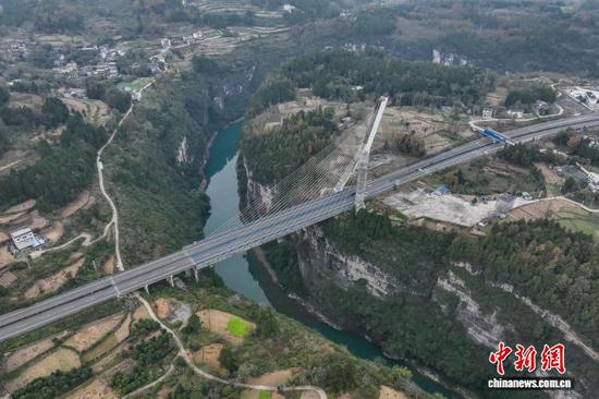 航拍贵州正安芙蓉江大桥宛如“空中竖琴”