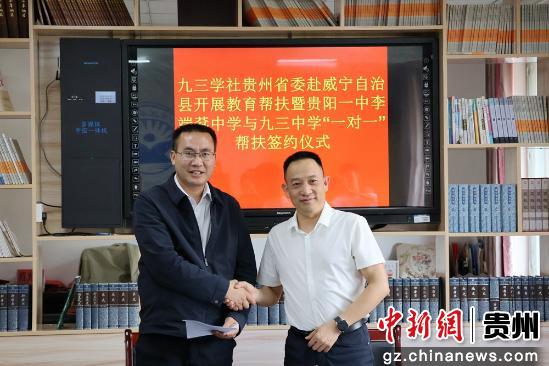 16日,在九三学社贵州省委的积极推动下,贵阳一中李端棻中学与毕节市威宁彝族回族苗族自治县九三中学举行“一对一”精准帮扶签约仪式。