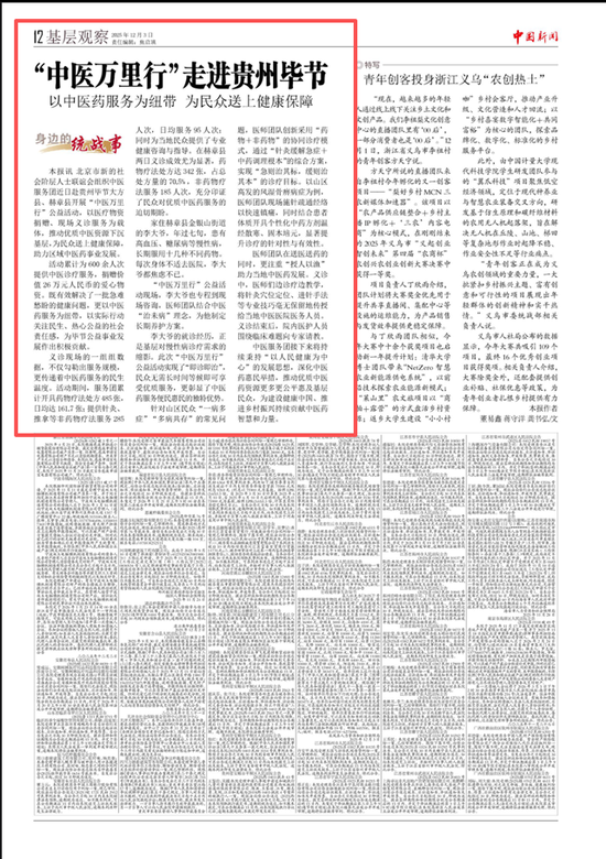 《中国新闻》报关注:“中医万里行”走进贵州毕节