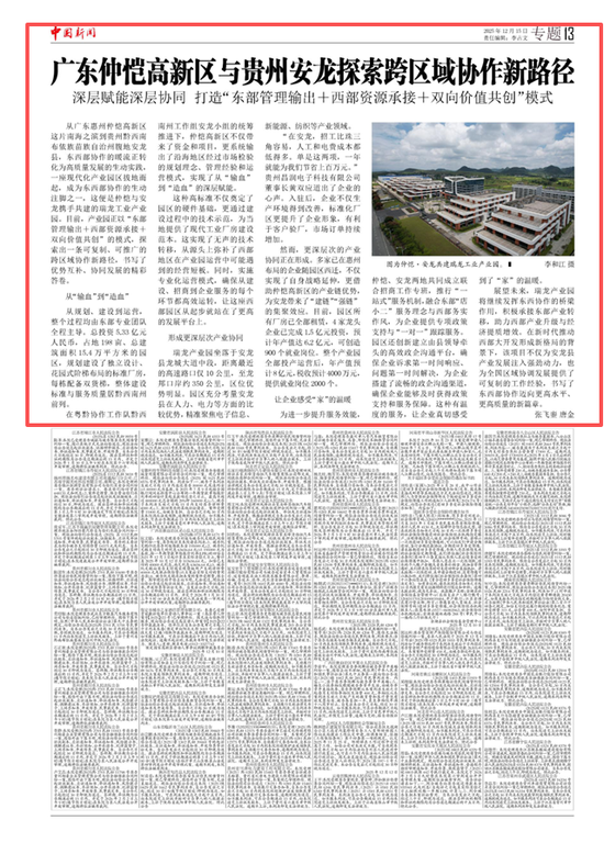 《中国新闻》报关注:广东仲恺高新区与贵州安龙探索跨区域协作新路径