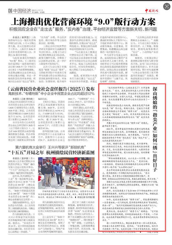 2025年初,在金融支持民营企业高质量发展座谈会上,夏华提到了一个困扰产业链下游商户发展的问题,引起参会者的关注。“在云贵川等地,很多身处小村落的绣娘没有银行账户,买布料、卖绣品往往得用现金交易,更缺乏融资渠道,很不方便。”