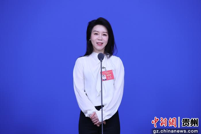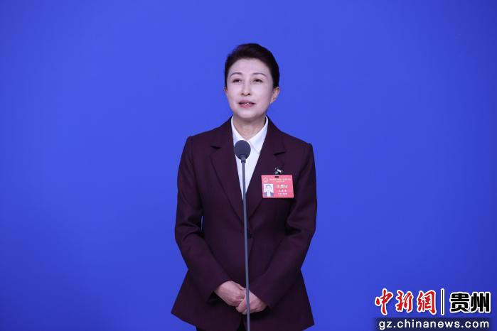 贵州省人大代表、贵州海峡阳光国际旅行社有限公司总经理包璐在回答记者提问。 记者 瞿宏伦 摄