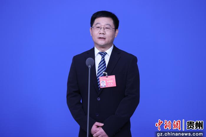 贵州省人大代表、贵茶集团董事长兼总经理蒙祖德在回答记者提问。 记者 瞿宏伦 摄