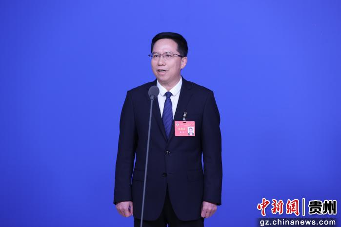 贵州省政协委员、中航重机股份有限公司党委书记、董事长冉兴在回答记者提问。 记者 瞿宏伦 摄