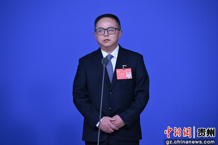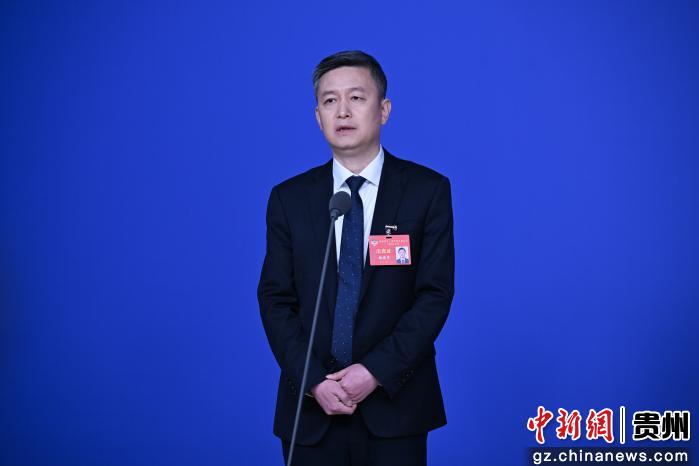 贵州省政协委员、贵州义派电子商务有限公司总经理、省网络人士联谊会副会长丁浪在回答记者提问。记者 瞿宏伦 摄