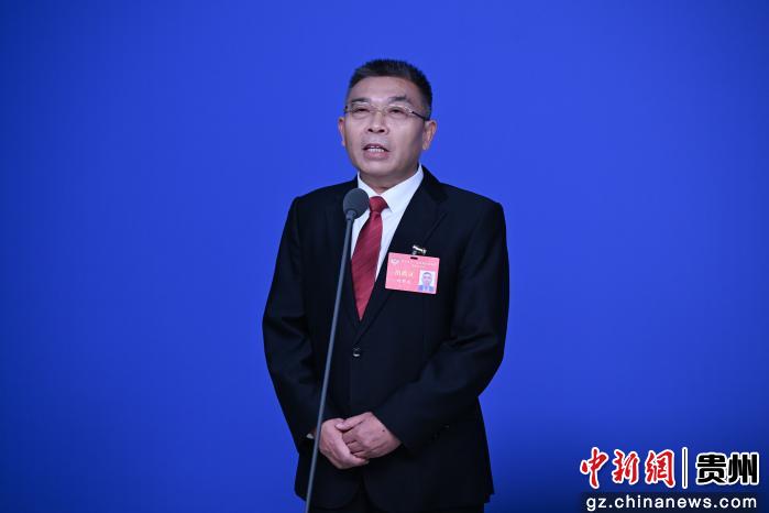 贵州省政协委员、新的社会阶层人士联谊会副会长、叶辛好花红书院院长刘学文在回答记者提问。记者 瞿宏伦 摄