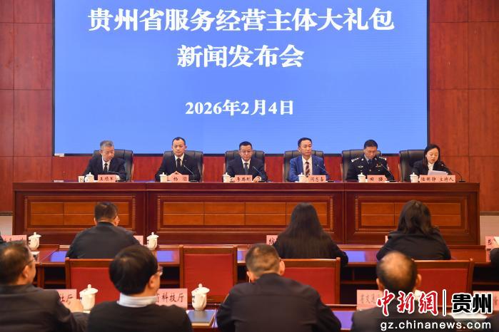 中新网贵州新闻2月4日电(施乐)4日,《贵州省服务经营主体大礼包》新闻发布会在贵阳市举行,贵州省政务服务中心联合28家省直部门,梳理形成涵盖6大类100条具体举措的“大礼包”,旨在为每一位在黔投资兴业的经营者提供服务。
