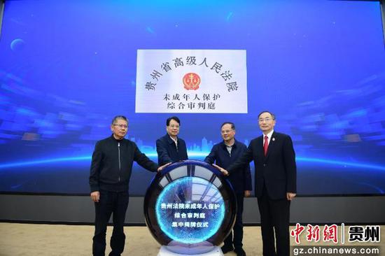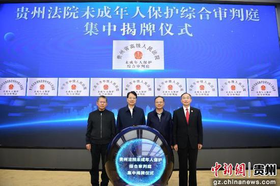 中新网贵州新闻11月22日电 (记者 张伟)贵州省高级人民法院21日举行贵州法院未成年人保护综合审判庭集中揭牌仪式。贵州省委常委、省委秘书长郭锡文,贵州省人大常委会党组成员于杰,贵州省政协副主席唐德智出席仪式。贵州省法院党组书记、院长茆荣华出席仪式并致辞。贵州省法院党组副书记、常务副院长张洪武主持仪式。