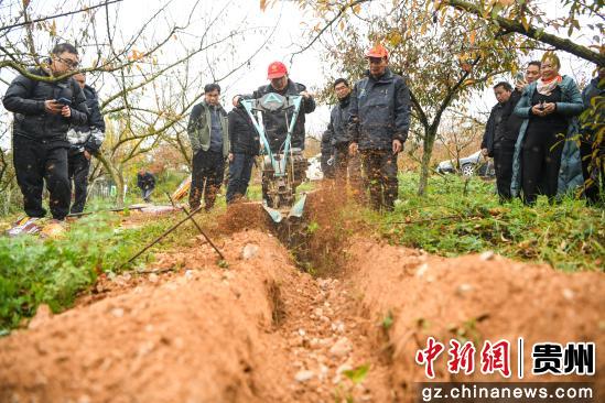 “刚才陈红副教授讲到,树冠上的叶子长到哪里根系就长到哪里,开沟之后清晰可见。”贵州多彩卉农业科技有限公司总经理龙涛站在开沟处大声说,营养均匀,保水分。