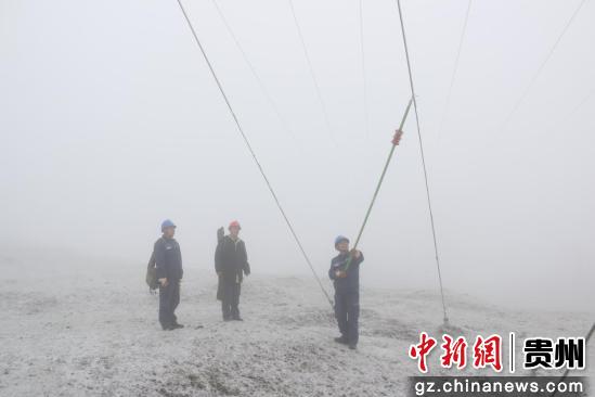 12月23日,在平均海拔900米的德江县泉口镇万亩草场,受强冷空气影响,这里出现雨雪凝冻天气。一大早,南方电网德江供电局高山供电所工作人员专门到此开展10千伏线路防冰特巡、覆冰监测、无人机巡视等工作。