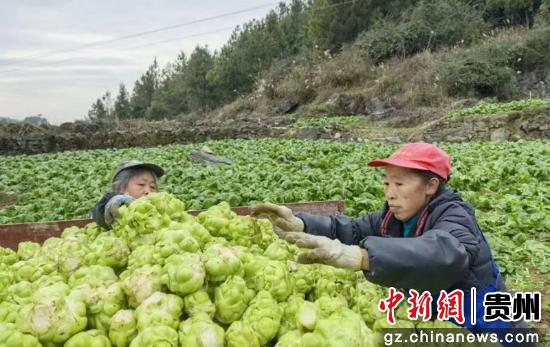 中新网贵州新闻1月17日电(邹琴印 周舒羽) 当下,正值大头菜的采收时节。在铜仁市沿河土家族自治县黑水镇,村民们种植的大头菜生机蓬勃、个头饱满。田间地头,大家忙着拔菜、削须、装筐、搬运……处处洋溢着丰收的喜悦。