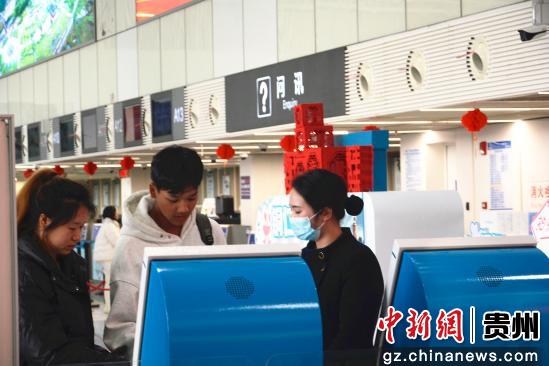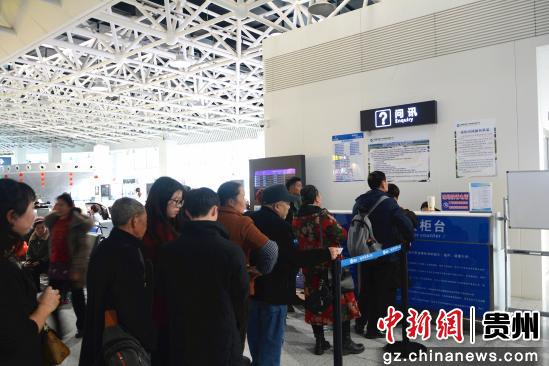图为旅客在贵州省铜仁凤凰机场国内出发大厅办理值机业务。申逸恺摄