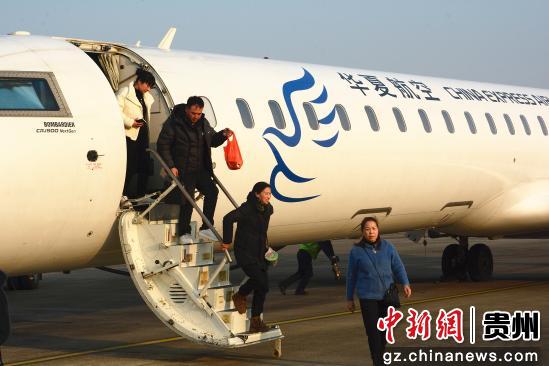 图为旅客在贵州省铜仁凤凰机场下机。申逸恺摄