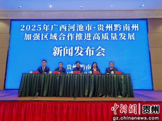中新网贵州新闻2月26日电(刘美伶)“打造跨景区旅游产品,开发跨省旅游精品线路,联手创建大旅游模式,打响‘黔山桂水’品牌。”广西壮族自治区河池市人民政府副市长翟红玲26日在2025年广西河池·贵州黔南州区域合作新闻发布会上说。