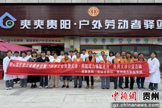 中新网贵州新闻5月22日电 (记者 张伟)贵州省贵阳市观山湖区总工会日前联合贵州城市职业学院专业医生团队,在阳光大道爽爽贵阳·户外劳动者驿站等开展观山湖区总工会服务日暨“共享工会免费义诊·共筑观山温馨港湾”免费义诊公益活动,为400余名新就业群体送上健康关怀和守护。