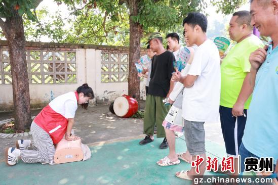 为让村民掌握急救要领,增强面对突发状况时的自救互救能力,红十字会还提供模拟教具,现场示范进行胸外按压、人工呼吸等实操练习;还通过发放健康手册、现场讲解等方式,积极传播红十字精神和理念,普及普及防灾避险和“三献”等卫生健康知识。