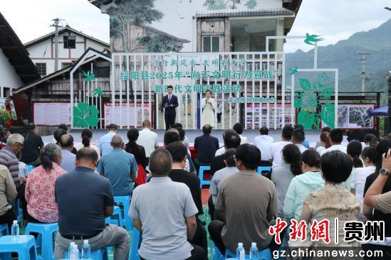 而与之相映衬的,是枧坝镇黄鱼村黄鱼江畔传来的一阵阵欢声笑语,这是“遵”行新风尚˙文明我先行绥阳县2025年“向不文明行为宣战”新时代文明实践活动的现场。