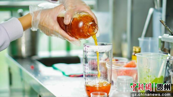 猕猴桃的清甜、百香果的馥郁、木姜子油的辛香、刺梨汁的酸爽、薄荷叶的沁凉、折耳根的野趣……这些深植于贵州山水之间的风物,在选手们的巧手与匠心之下,化作一杯杯充满故事的特调茶饮。