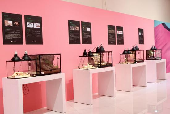 本次展览围绕“探索自然奥秘”这一核心主题,精心策划了多个亮点环节,为观众带来了一场视觉与知识的双重盛宴。展览划分为八大主题专厅,从遥远的热带雨林到干旱的沙漠,从幽深的雨林腹地到广袤的草原,来自全球各地的80多种、100多只昆虫与小动物纷纷亮相。从色彩斑斓的甲虫到技艺高超的织网蜘蛛,从歌声悠扬的蝈蝈到姿态优雅的螳螂,它们不仅展示了自身的独特魅力,更揭示了在生态系统中的不可替代作用。此外,以昆虫为切入点,延展了青蛙、乌龟、蜥蜴、灵蛇等多元动物种类,共同构建了一个生动多彩的自然世界画卷。