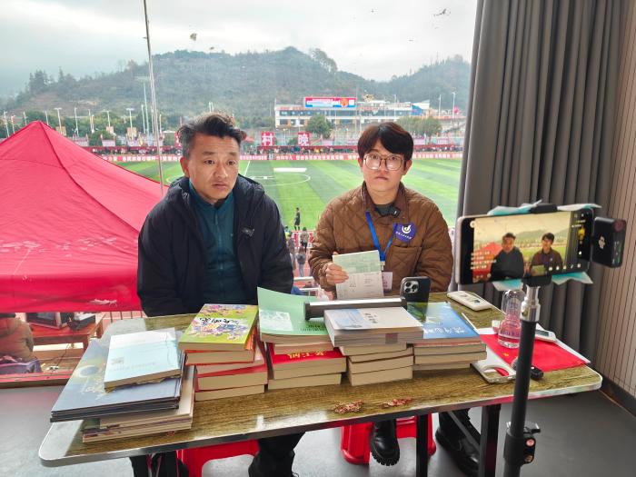 中新网贵州新闻1月5日电(记者 袁超)连日来,贵州人民出版社组织团队走进榕江县“村超”,以“贵人阅书香”为主题,通过现场直播、实地调研、图书捐赠等形式,将书香送入乡村,以文化赋能乡村振兴。
