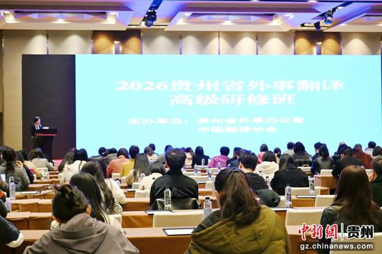 中新网贵州新闻3月18日电 近日,贵州省外事办联合中国翻译协会在贵阳举办2026贵州省外事翻译高级研修班。本次研修班邀请到中国翻译协会常务副会长黄友义、中国外文局西欧与非洲传播中心首席定稿人及译审孙雷两位资深翻译专家授课。来自省委外事工作委员会成员单位、市州、1+9国家级开放创新平台、高校等从事外事翻译与国际传播的专业技术人员约170人参加培训。