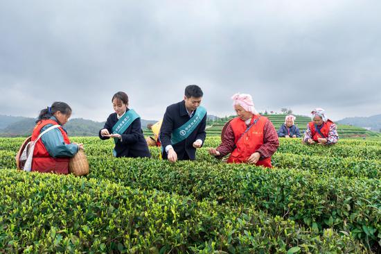 农行贵州省分行客户经理到黔南瓮安黄红缨茶园开展信贷调查(叶义坤 摄)。jpg农行贵州省分行工作人员走近百姓身边传递金融温暖。
