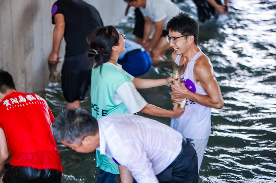 饮马湖万斤活鱼吸引五千市民下水摸鱼