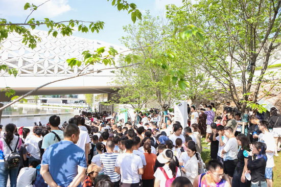 公园围绕四大景观结构进行布局,重点打造“一岸、三环、五湾、八个打卡点”,不仅有充满创造力的艺术街区和水岸剧场,还有樱花林带、无界飞马、台阶剧场、水镜广场等多个艺术景观,把抽象的文化还原成有温度、有活力、形象可感、可触摸的栖居共同体。