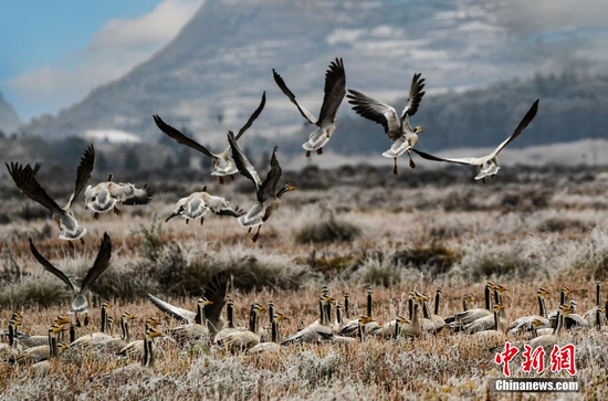 今天为大家推荐的每日一图是黑颈鹤在草海“起舞”。杨佐斌 摄